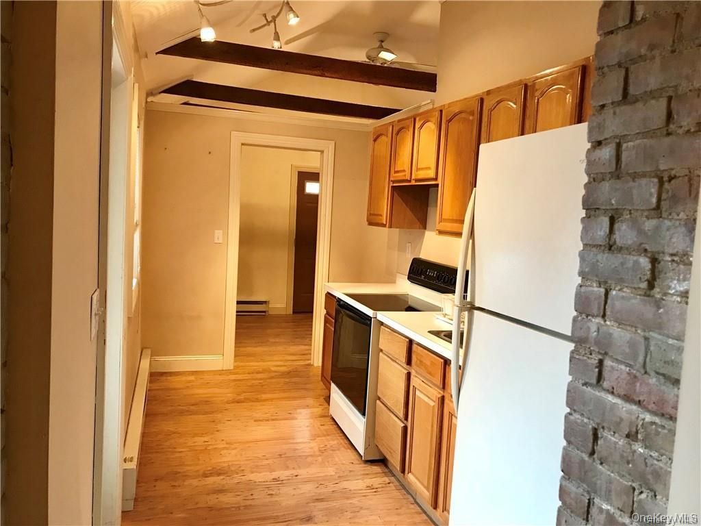 Cozy and Charming! Exposed brick and beams in this very clean first floor apartment with large livingroom.